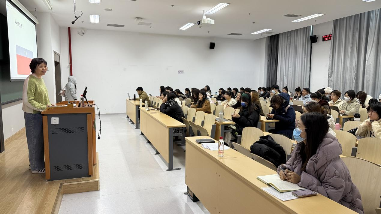 供稿、摄影:卞广为 编辑:于洁莹 为深入学习贯彻党的二十届四中全会精神,不断提高学生党员和入党积极分子的政治素养和思想理论水平,12月3日,外国语学院党委书记赵满以“知党情、明权责、强建设——新时代学生党员的使命与担当”为题讲授专题党课。学院全体学生党员和入党积极分子、明德书院昭理和知理党支部成员参加党课学习。 赵满从“什么是党员”入手,介绍了党员定义的核心要素——“赞同某党的纲领和政策、遵守党章、自愿加入该党的成员”,指出党章对党员的基本规范,并带领大家重温入党誓词。随后,她深入剖...