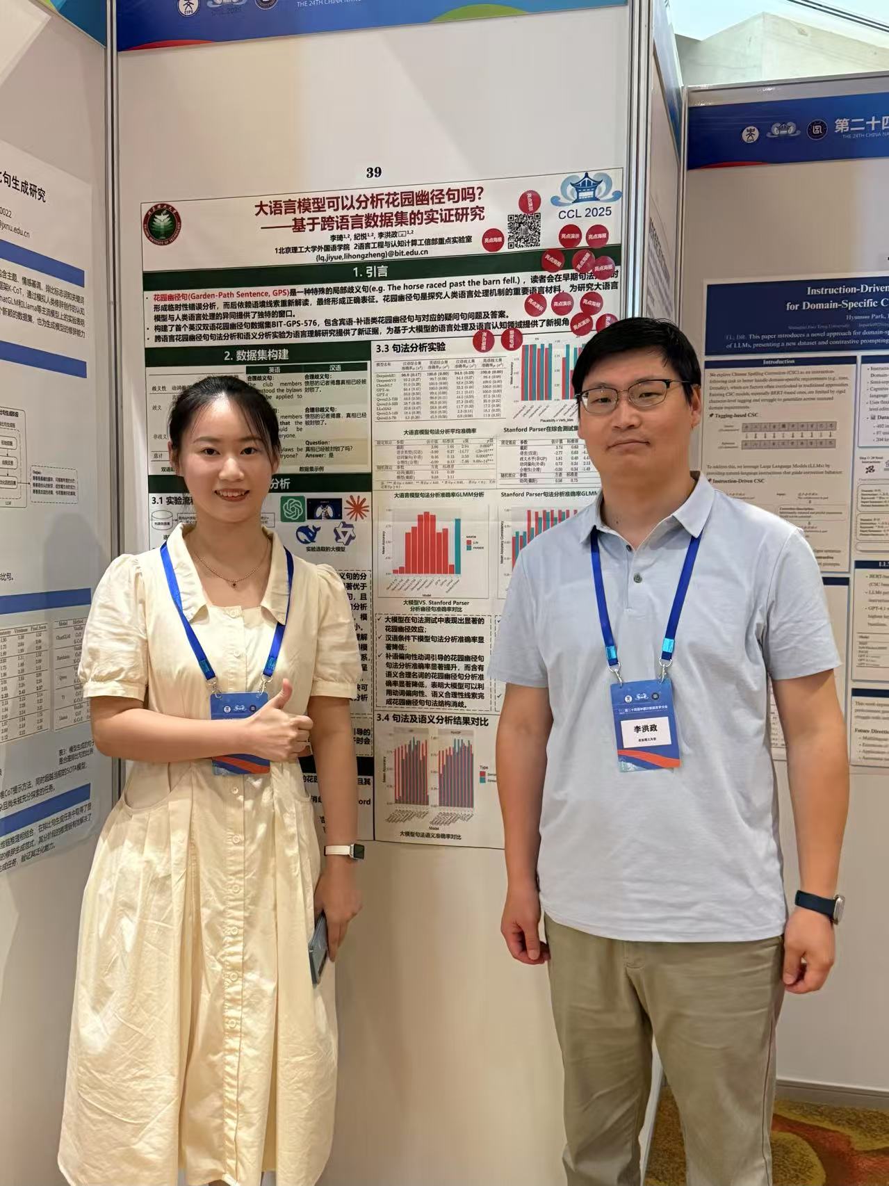 本次大会共收到中英文投稿论文228篇,研究生李琦作为第一作者、通讯作者李洪政与合作者纪悦副教授的论文《大语言模型可以分析花园幽径句吗?—基于跨语言数据集的实证研究》被录用。这也是继去年以来,课题组论文连续两年被CCL大会录用。